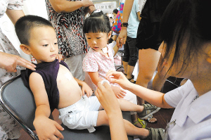 7月19日是农历“头伏”第一天,沈阳市中医院的医生在给小患者贴敷。“冬病夏治”是中医的一种传统治疗方法,在夏季尤其三伏天治疗入冬容易反复发作的感冒、咳嗽等疾病,往往可以达到较好的疗效。新华社发