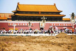 天安门广场开始更换草坪