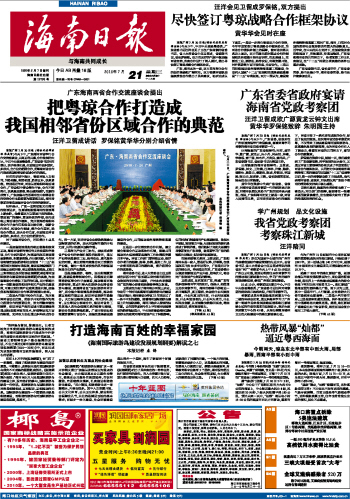 海南日报 头版 001 2010-07-211 2010年07月21日 星期三