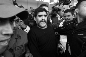 22日,马拉多纳抵达委内瑞拉迈克蒂亚的西蒙·玻利瓦尔机场。马拉多纳受委内瑞拉总统查韦斯的邀请,来到委内瑞拉指导一系列足球培训活动。 新华社发