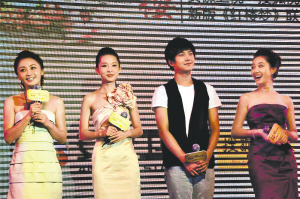 | 薛宝钗、王熙凤、贾宝玉和林黛玉扮演者(左起)亮相推广会 |