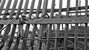 7月24日,临高县调楼镇黄龙港造船厂,工人正为广东海安的客户打造100多吨的渔船,预计一个月后这艘渔船能建成下水。 据悉,临高造船业由来已久,其手工造木船闻名省内外。临高过去造船基本上是自用,现在临高发挥当地造船优势,变造船自用为出售,不仅吸引大量省内订单,就连广东等地的渔民也纷纷前来订单造船。 本报记者 李英挺 特约记者 陈朝辉 实习生 李健 摄