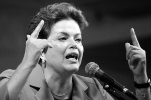 7月23日,执政的劳工党总统候选人罗塞夫出席竞选活动。当天公布的民意调查显示,罗塞夫的支持率为41%,超过最大竞争对手、社会民主党总统候选人若泽·塞拉8个百分点。 新华社/圣保罗通讯社