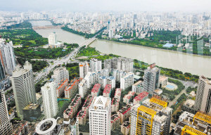 | 从“西南第一高楼”的广西南宁地王大厦59层楼上俯瞰南宁城区。