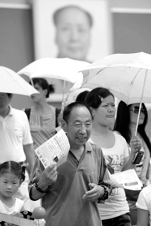 7月25日,游客在北京天安门城楼前游览。 当日,北京继续高温闷热天气,城区日间最高气温突破35摄氏度。 新华社记者 任正来 摄