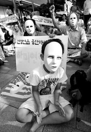 →在美驻韩使馆附近,人们参加反对韩美联合军演的集会。 新华社发 |