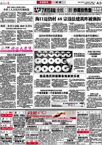 海南日报 本省新闻 003 2010-07-261 2010年07月26日 星期一