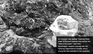 | ←未知的瓶状海绵体。探索这些海洋区域非常重要,因为它们包含着对海洋生命非常重要的“海洋树”。 |
