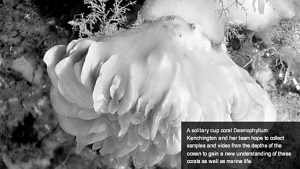 | ←一种杯状珊瑚。科学家们希望能够从深海中收集到足够生物样本和视频资料,以更好地了解这些海绵体和海洋生命。 |
