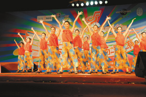 晚上8点整,大赛启动仪式晚会在欢快明亮的活动主题歌《扬歌、扬歌,我们有约》中开始,俊男美女们倾情演绎《海的韵律》《爱的主打歌》《相约国际旅游岛》等14个歌舞节目,其中海南知名的老爸茶乐队为大家献唱了原创歌曲《黑童话》,博得了观众的热烈掌声。
