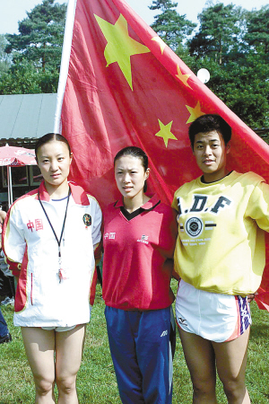 | 二OO二年在荷兰阿兰市举行的第五十届军事五项世界锦标赛上,女子个人冠军王莹(中)、亚军田琳娜(左)和季军徐蕾在赛后合影(资料照片)。 新华社发 |