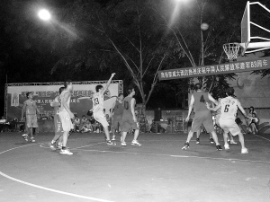 本报海口7月27日讯 (记者李冰 通讯员吴彭保)今天下午,海口市秀英区军警民篮球邀请赛在秀英区凯威大酒店篮球场正式拉开帷幕,共有海军、武警、海事、消防、医院、邮政等15支队伍参赛。 据了解,本次比赛将进行8天,参赛的15支队伍被分为4组进行比赛,最终决出的前四名将获得总额为18000元的奖金。 上图:27日,海口市秀英区军警民篮球邀请赛在凯威大酒店篮球场开赛。 王春萍 摄