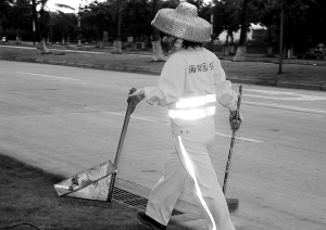 为强化防护措施,海口环卫部门为环卫工人购买了反光工作服,新装7月26日换发完毕。图为环卫工人穿着新式反光衣在海口市椰海大道清扫。 据统计,从2009年1月至2010年4月,海口市秀英、琼山、龙华、美兰四区环卫局,共有21名环卫工人遭遇车祸。 本报记者 李英挺 实习生 李建 摄