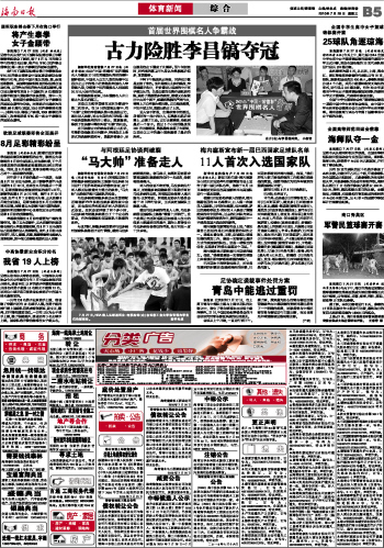 海南日报 体育新闻 013 2010-07-281 2010年07月28日 星期三
