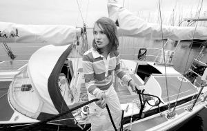 7月27日,在荷兰布劳沃斯港,14岁的劳拉·德克站在自己的船上。 当天,历经将近一年法律纠纷,劳拉父母重获对她的监护权,意味着法院允许她挑战单人环球航海最年轻者纪录。德克原计划去年9月1日开始独自驾船环游全球,历时2年。去年8月,法院以安全为由予以禁止,将她置于儿童保护机构监管下至2010年7月1日。 新华社/法新
