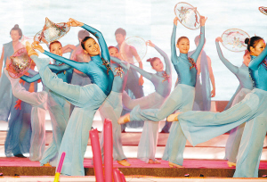 | 七月二十八日晚,临高县第四届渔民节拉开序幕。图为开幕式晚会中的舞蹈《哩哩美 美临高》。