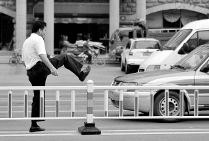 | 7月28日,省文明办、省公安厅交警总队在三亚开展“文明交通行动计划”检查活动。图为三亚新风路一位男子跨过护栏横穿马路。 本报记者 王凯 摄 |