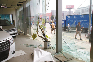 记者在现场看到,离爆炸地点100米范围内的建筑物毁坏严重:屋顶坍塌、玻璃破碎,有的钢筋水泥都被炸开。距离爆炸点50米处的公路上,一辆公交车的玻璃也被震碎,多名乘客受伤;1辆集装箱卡车上面的集装箱板也都震凹进去。