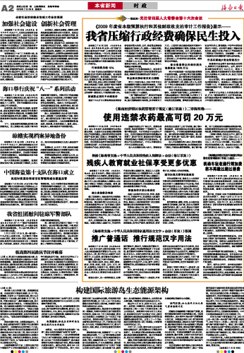 海南日报 本省新闻 002 2010-07-291 2010年07月29日 星期四