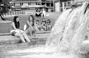高温袭击多国 超38℃ 7月28日,在西班牙首都马德里,两位少女在喷泉水池旁纳凉。当日,伊比利亚半岛遭遇热浪袭击,马德里最高气温超过38摄氏度。西班牙政府已发出高温警告。 新华社发