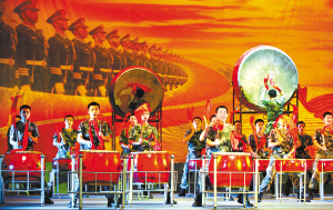 | 7月29日,庆祝海南省军区成立60周年文艺晚会在省军区礼堂举行。图为鼓乐表演———《欢庆》。 本报记者 张杰 实习生 李健 摄 |