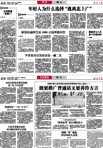 本月初,广州市政协一份有关在广州电视台加大新闻节目普通话播音的建议再次将普通话和方言推向了舆论漩涡。以“粤语沦陷”之名,南粤大地再现“保卫粤语”之声。近年来,“以粤普之争”“沪普之争”为代表的方言“保卫运动”不时热点频出,那么,普通话与方言之间只能是对立、只能是你“进”我“退”吗?在刚刚结束的第七届中国社会语言学国际研讨会上,专家学者再次从保护语言多样性、构建和谐、健康语言生活的角度深入探讨了普通话与方言的功用及关系。 普通话和方言不可相互替代 青海民族大学文学与新闻传播学院院长谷晓恒说,普通话形成并成为我国公共语的历史可追溯到以北京为都的金朝,前后历经了数百年。一种语言如果在其分布的不同地域内存在明显的方言差异,就会人为形成交流障碍,直接影响到行政司法、经济发展和社会文化交流。 历史上的共同语因而有着通语、官话、国语等称谓。新中国成立以后,推广普通话一直是我国重要国策。经过50多年的努力,我国的普通话推广工作取得了巨大成就,普通话在我国各项事业中起到了前所未有的促进作用。 如果赵本山的小品和电影《疯狂的石头》改用普通话,还会那么可乐吗?这一文化现象深刻揭示出方言在特定区域和环境中具有不可替代的功用和价值,这也是方言生命的体现。 据复旦大学教授游汝杰介绍,在方言区,具有双重语言能力(普通话和方言)的人不少,但其中大多数人方言能力强于普通话。方言“母语”比普通话更能充分细致地表达个人思想感情。 此外,同乡人在外地相遇,最直接、最可靠的互相认同依据就是乡音。在海外说汉语方言的华人超过3000万。许多华人只能说某一种汉语方言,听不懂更不会说普通话。他们回国与亲人交流只能用方言,方言是他们认同祖国和家乡的情感标志。 在共存互补间寻求平衡 “如果只看到普通话对方言使用空间的挤压,而看不到普通话对方言区发展、对方言生命力的贡献是偏颇的。推广普通话和保护方言之间的冲突不过是结构性矛盾,而非根本性质的对立。”上海外国语大学宫同喜教授说。 教育部语言文字应用所研究员、中国社会语言学会副会长苏金智认为,语言的多样性和统一性是个永恒的话题。但现实生活中,人们要交往、沟通,就牵涉到一个平衡的问题。而检验一个语言政策的成功与否,很重要的一点就看其是否达到了平衡。我国各地方言差别很大,不推广普通话不行,不保护方言也不行,关键是如何科学地加以平衡。 “正确的态度并符合实际的做法应该是推广普通话、善待方言,提倡普通话用于正式场合或公共场合,方言用于私人场合,以此来构建双语和谐社会。”游汝杰说。 谷晓恒说:“根据普通人的平均语言能力,完全能够掌握两种不同的语言,按照不同场合、不同功用和不同情感表达来选择使用。就像穿衣服一样,西装革履和体恤、牛仔裤可以兼容。因此,普通话和方言完全可以共存互补、和谐相处。” 记者 马勇 (据新华社西宁7月29日电) |