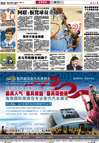 海南日报 体育新闻 016 2010-07-301 2010年07月30日 星期五