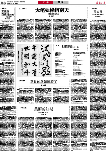 我们连队几乎倾巢出动,去百里之外的红湖“支农”。那时我还是个入伍不到一年的新兵。帮助知青插秧。这是去红湖之前团部给我们明确的具体任务。 这时正是乡村春耕的大好时光。车外是一片翠绿的原野,有清草样清凉的味道,弥漫在裹着黄尘的空气中。 经过急行军,我们的车队终于在晌午时分驶入了红湖。 红湖是一个围海造成的人工湖,原先看不到边的湖面,不知何年何月被知青用手推车填出了辽阔的稻田。在这里种田的都是六、七十年代初,从祖国四面八方来的知识青年,操着七、八种地方方言,很是动听。湖区很平坦,简易公路绕湖穿行,两边是灰白的桉树,迎风而摆的杨柳,差落有致的茅草房建在湖边,实际上这是以生产建设兵团为建制的知青农场。知青对我们的到来非常热情,早已把宿舍、厨房腾空并打扫干净,好像迎接自己的亲人;孩子们围在战士的四周,指着背上乌黑的冲锋枪,肆无忌惮地叽叽喳喳大惊小怪;农场的领导对当兵的到来有种本能的好奇和兴奋,他们跑来跑去把连队安排妥当,又陪着官兵看完电影《地道战》才离开。矮个子场长站在溶溶的月色里,握着光头连长的手一再叮嘱:你们有什么困难一定给我讲喔,咱们是军民一家嘛。 尽管“支农”是临时的,但连队的日常管理还是相当严格。晚点名时,光头连长总忘不了用很凶的口气,对自己的部下反复训示:同志们,红湖是个好地方啊,美女资源也十分丰富,但成份比湖底还复杂,大家要筑起思想防线,坚决抵御住资产阶级思想的腐蚀。我再一次重申:平时外出要两人以上,按时归队,谁要在外面和姑娘拉拉扯扯,打情骂俏,想立功入党门都没有,严重的还要处分呢。这时,队伍里有人打了一个响屁,满脖颈青筋的光头连长似乎觉察出了什么,用很浓的四川口音提高声调说:怎么啦,说得不对吗?大家说,我说得对不对?大家把头伸长一点点,齐声喊道:连长说得对。实际上,连长的训斥没有得到彻底的落实,把士兵的青春冲动扼杀在萌芽状态之中的做法失败了。“支农”完后有几个战士和女知青偷偷恋爱上了。有个战士甚至退伍后没有回老家,而是直奔红湖和自己的心上人结了婚,直到现在还打拼在红湖,成了养鱼专业户,日子过得蛮红火的。 看看田洋的辽阔。越辽阔,越觉得劳累。几天以后,士兵的热情大减,插秧的进度一天比一天缓慢。为了便于开展劳动竞赛,场长把我们和女知青安排在同一块稻田里插秧,但女知青插得比我们快,我们总想追上她们。于是大家就热情高涨,手像鸡啄食般不停地往田里插秧,笑声回荡在田野上。此刻阳光灿烂,海风怡人,有一些女知青回过头来看我们。她们都是些清秀、漂亮的姑娘,这一眼,就会使我们有突然而至的温暖以及惊心动魄的感受!我甚至看到排长、班长的头也常常往回拧,手脚也有些忙乱。我身边的三班长勇敢得很离谱,当一个长辫子姑娘挑着开水过来时,他主动迎上去接过水桶并和那女子搭讪。那长辫子姑娘长的眉清目秀,身材如柳,胸脯起伏,嘴边长两个深深的酒窝,时不时抿着嘴笑。三班长说三句她就回一句,或是三班长说两句她只点点头。我暗暗地说了句:这姑娘真漂亮呢。据说,她出身于资本家家庭,来农场改造已经五年了,谁都说她表现好,可上头就是因为成分太高把她排斥在团外。光头连长见大家都屏声静气,将目光集中在长辫子姑娘的身上,紧张得以为出现了“糖衣炮弹”,立即丢下手上的秧苗,挺直身子大声说:喂喂,大家累了吧,累了大家就唱唱歌把精神提起来。说完,便自告奋勇指挥大家放开喉咙大声唱:“我们都是来自五湖四海,为了一个共同的革命目标,走到一起来了。”唱完又唱:“下定决心,不怕牺牲,排除万难,去争取胜利。”接着又唱:“大海航行靠舵手,万物生长靠太阳……。”歌声此起彼伏,连女知青也不甘落后,跟着士兵一齐唱起来。在震耳欲聋的歌声中,大家的热情又高涨起来,长辫子姑娘也离开了稻田又回驻地挑水了,苗条的身影渐行渐远的时候,三班长长长地吁了一口气。他那粗重的气息直扑我的耳际,我吃惊地回头看着他,他却很不好意思地低下头,脸膛黑红得骇人,连右手插下的秧苗也歪歪斜斜,仿佛刚被强海风刮过似的。 此后,每当傍晚,三班长都要拉上我逛一趟湖边。奇怪的是,我们几乎每次都不经意地遇到长辫子姑娘;三班长装着不认识把头拧开,我朝她点点头或打个招呼就过去了。其实,三班长与长辫子姑娘之间的交往已经升温。有一天晚上,三班长单独外出,回来得很晚,我正好站岗拦住他。我说,你与长辫子姑娘约会了。他点点头。我说,你不怕连队处分吗?三班长说,怕什么,大不了回农场和她一起当农民。我说,传出去对连队影响不好吧。他说,那有什么办法,我的确喜欢她。我说,她喜欢你吗?他又重重地点了一下头。接着他恳求说,我们是朋友,你要替我保密啊。我无奈地说,放心吧,我不会说出去的。三班长和我的关系非常铁,平时他经常教我打篮球,还送过我十斤粮票五尺布票,我也用自己的津贴给他卖过两包佛山产的盲公饼。因此,三班长喜欢长辫子姑娘我早就看出来了,对他的行动我基本上是睁一只眼闭一只眼,不想坏了他的好事。他也觉得我是一个能让他信得过的人,经常在我夜里站岗时就偷偷外出和长辫子姑娘约会。但好景不长。有一天,三班长终于被光头连长叫去连部训了一顿,长辫子姑娘也被场长叫去“耐心说服教育”,从此以