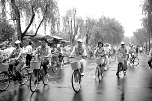 | “蓝丝带”中国行团队在西湖冒雨做宣传。