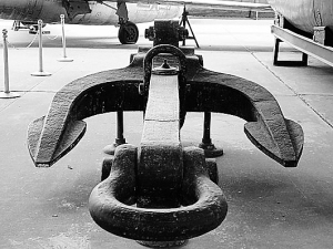 镇远舰应该有两具这样的锚,来自伏尔铿原厂。其中一具在抗日战争胜利后为国民党海军少校钟汉波索还,用飞星号海关缉私舰运送回国,现存中国人民军事博物馆,另一具,至今留存日本,据说就在这里了。