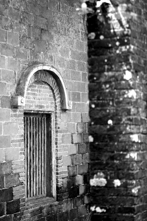在紧闭的覃宅大门两侧,还可以找到许多孔眼。据村民介绍,这是用于防卫的枪眼。明清两代,博鳌港海盗横行,到了民国时期,这一带仍有匪寇打家劫舍,社会秩序一直比较混乱。为了防御匪盗,覃家建成封闭式大院,头门设置了枪眼,屋顶还建类似于塔楼的建筑,用于非常时期观察院外动静。遗憾的是如今塔楼已被1973年的那场大台风摧毁,仅剩下层建筑物。