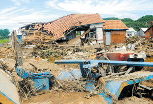 这是吉林省桦甸市二道甸子镇被洪水损毁的房屋(2010年8月2日摄)。