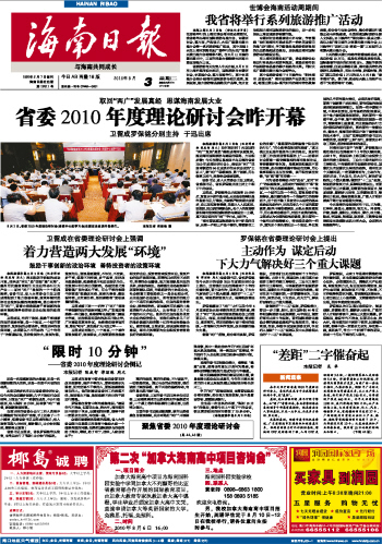 海南日报 头版 001 2010-08-031 2010年08月03日 星期二