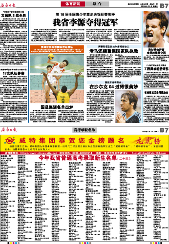 海南日报 体育新闻 015 2010-08-031 2010年08月03日 星期二