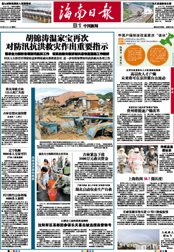 海南日报 中国新闻 009 2010-08-031 2010年08月03日 星期二