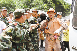 贵州明阳煤矿 10人死亡7人被困 8月3日,在贵州仁怀市长岗镇明阳煤矿,一名矿难遇难者遗体被抬出风井。 8月3日上午,贵州省仁怀市长岗镇明阳煤矿发生一起煤与瓦斯突出事故,已确认10人死亡,7人被困。目前,事故抢险救援工作正在进行。 新华社发