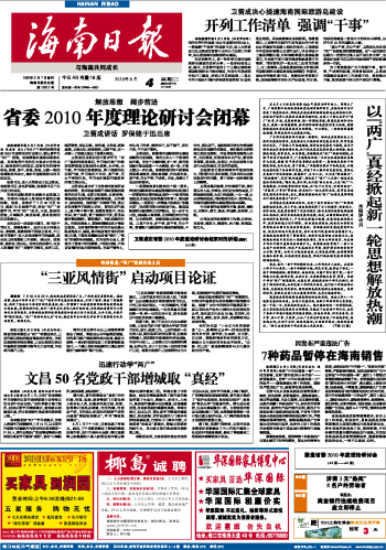 海南日报 头版 001 2010-08-041 2010年08月04日 星期三