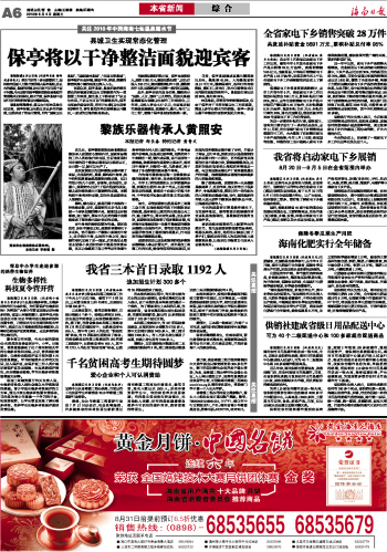 海南日报 本省新闻 006 2010-08-041 2010年08月04日 星期三