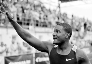 8月3日,曾经的世锦赛和奥运会男子百米冠军美国选手加特林四年禁赛期满后,在爱沙尼亚拉克韦雷举行的一场田径邀请赛中复出,并赢得首场比赛的胜利。图为加特林在男子100米比赛后向观众致意。 新华社发