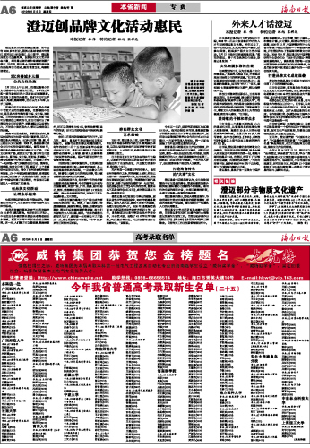 生活在澄迈的群众是幸福快乐的。在该县东西南北中,几乎贯穿全年都有各种文化体育活动。