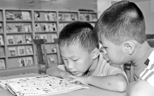 7月27日上午11时,在澄迈县青少年文化活动中心大楼的大厅里, 9岁的王祥和一群年龄相仿的小朋友快乐地蹦跳着。在这座5层高的大楼里,他们不仅可以学美术、唱歌、练舞蹈等,还可以打乒乓球、玩手工活等。