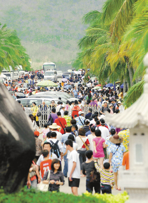 | 上半年三亚各观光景点接待游客量均有增长。图为南山景区游人如织的情形。