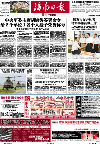 海南日报 中国新闻 009 2010-08-051 2010年08月05日 星期四