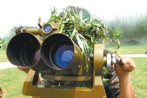 ↑参演士兵侦测“敌机”坐标后指示给炮阵地。