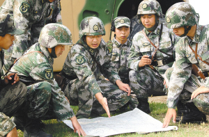 | ↑参演的济南军区某防空部队指挥人员在“作战地域”明确任务。