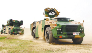 | →参演的济南军区某防空部队导弹战车快速占领阵地。