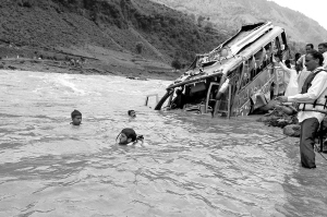 52人死亡 8月5日,巴基斯坦官员说,一辆公共汽车当日下午在东北部巴控克什米尔地区坠入河中,造成52人死亡、11人受伤,另外还有数人失踪。 新华社/法新