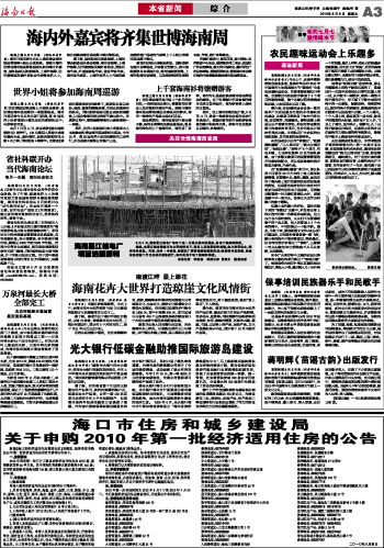 海南日报 本省新闻 003 2010-08-061 2010年08月06日 星期五
