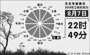 新华社天津8月6日电(记者周润健、蔡玉高)8月7日22时49分将迎来今年的立秋节气,今年立秋属于“晚立秋”。天文和气象专家表示,立秋不论是“早”还是“晚”,从这一刻起,我国气温将逐渐下降,总的趋势是天气逐渐凉爽。