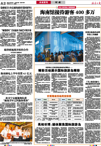 海南日报 本省新闻时 政 002 2010-08-071 2010年08月07日 星期六
